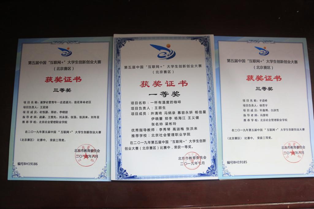 在2019年第五屆中國“互聯網+”大學生創新創業大賽北京賽區的比賽中,我院15個項目分别榮獲一等獎和三等獎,其中,職教賽道一等獎項目1個,“青年紅色築夢之旅”賽道三等獎項目1個,職教賽道三等獎項目13個。李秀琴、高淑梅、張洪來三位老師榮獲“優秀指導教師獎”。
