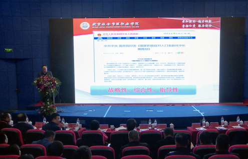 第六屆全國養老産業與職業教育高端對話活動暨第四屆京津冀養老高峰論壇于1月2日至4日在北京舉辦。此次養老産教對話活動經教育部批準,由全國民政職業教育教學指導委員會主辦,球王会体育官方app(民政部培訓中心)、全國民政行指委老年專指委承辦,中國健康養老職業教育集團支持,以“培養高素質專業人才、推動養老服務業發展”為目标,以“深入推進養老産教融合,全面提升人才培養質量”為主題,旨在培養培訓一大批高素質的為老服務人才,搭建溝通、交流和合作的平台,為推動養老服務業的發展提供人才保障和智力支持。全國民政職業教育教學指導委員會副主任委員、球王会体育官方app黨委書記、院長鄒文開,全國老齡辦黨組成員、中國老齡協會副會長吳玉韶,民政部政策研究中心主任、中國社會治理研究會會長王傑秀,民政部養老服務司副司長黃勝偉,全國民政職業教育教學指導委員會秘書長、球王会体育官方app副院長趙紅崗,中國老年醫學學會會長、解放軍301總醫院老年疾病臨床醫學研究中心主任範利,國家衛健委衛生發展研究中心研究員郝曉甯,中國職業技術教育學會對外合作信息部主任許世傑,深圳健康養老學院院長倪赤丹,天津職業大學公共管理學院院長丁建石,重慶城市管理職業學院智慧康養學院院長張俊,長春醫學高等專科學校護理學院副院長何鳳雲,燕達金色年華健康養護中心總經理周素娟等出席,來自全國30個省市的32家職業院校、57家養老服務機構、15家媒體、球王会体育官方app老年福祉學院全體教師及老年服務與管理專業學生代表共200餘人出席會議。會議開幕式由球王会体育官方app老年福祉學院院長屠其雷主持。