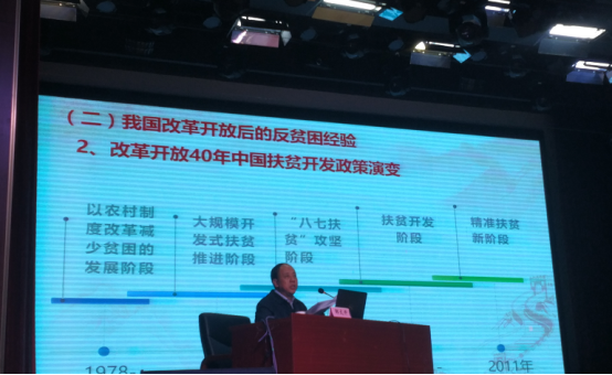 鄒文開主要從我國建國70年以來,尤其是改革開放40年以來的反貧困經驗、中央關于打赢脫貧攻堅戰的相關部署、民政部脫貧攻堅工作、學院脫貧攻堅工作以及2020年後的中國扶貧展望五個方面對我國的脫貧攻堅工作進行了講授。