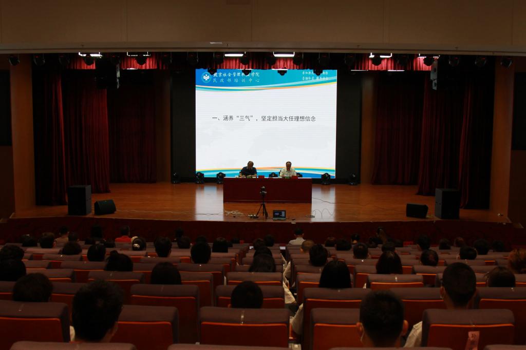 9月13日,黨委書記鄒文開在教學樓報告廳以“赓續民政精神,厚植家國情懷,讓青春在不懈奮鬥中綻放絢麗之花”為主題,給2021級新生上大學第一課、思政第一課。副院長栗演兵主持授課。